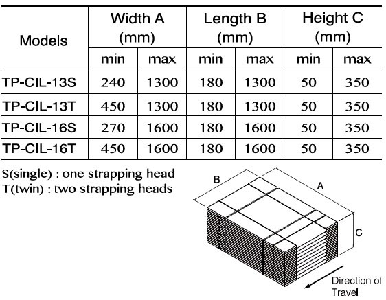 | Capacity | Up to 24 bundles/minute (Model: TP-CIL-13S & TP-CIL-13T) |